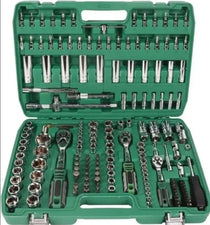 1/4", 1/2" 3/8" čegrtaljka sa 72 zuba nasadni ključevi, dvosmjerne čegrtaljke, brzo uklanjanje gumba, samo 5 stupnjeva po okretaju; 104 komada metričkih nasadnih nasadnica u 6 točaka: 17 komada 1 /2" 10-32 mm, 10 komada 3/8" 10-19 mm, 13 komada 1/4" 4-14 mm, 5 komada 3/8" dubokih ključeva: 16-22 mm, 7 komada 1/4" dubokih ključeva: 4-10 mm; 2 komada 1/2" DR utičnica za svjećice: 16, 21 mm, 30 kom 1/4" nasadne utičnice, 1/2" DR E utičnica--2PC: E20-24,3/8" DR E utičnica --6PC: E10 -11-12-14-16-18,1/4" DR E Tip utičnice-5PC: E4-5-6-7-8.