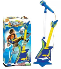 Komplet za sviranje gitare i mikrofona koji uključuje 1 električnu gitaru (22 inča), 1 mikrofon za zvučnike, 1 postolje za mikrofon sa podesivom visinom i liniju za povezivanje sa medijima. Jednostavan i kompletan set za sviranje električne gitare omogućava deci da uživaju u muzičkim instrumentima bilo kada i bilo gde! Multifunkcionalna muzička igračka gitara: postolje za mikrofon zahteva teleskopsku šipku i osnovu za sklapanje, ima podesivi opseg visine od 19,6 do 36,6 inča, a držač mikrofona koji se može okretati za 180° nudi podešavanje ugla bez napora, omogućavajući deci da obezbede savršeno pozicioniranje mikrofona svaki put. Neka deca ponesu igračke gitare, povežu medijski kabl sa telefonom, MP3 i pritisnu taster za uključivanje/isključivanje omogućava deci da uživaju u bilo kojoj od 8 demo traka sa pesmama i pretvaraju se da im zapravo trzaju po žicama.
