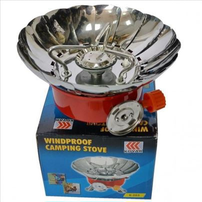 Reso ima zastitu od vetra koja moze da se podize i spusta po potrebi kao lepeza od metala. .. Sa donje strane sklapajući nogari. .