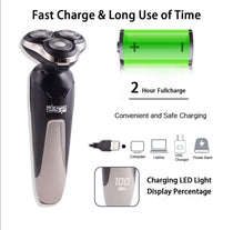 Punjivi vodootporni brijač Ovaj model ima ugrađen trimer, 3 plutajuće glave za brijanje koje dolaze u maksimalan kontakt sa kožom lica, pružajući udobno i lako brijanje Visokih performansi Nizak nivo buke procenat punjenja LED svetla Specifikacije: Brend: DSP Model: 60017 Vreme rada: do 65 minuta Vreme punjenja: 2-3 sata Snaga: 5V