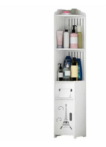 Donji deo ormana je predviđen za kantu za smeće ili za prljav veš, sledeća fioka sa prorezom na sredini je za toalet papir/ubrus, dok su gornje police otvorene i možete staviti dosta stvari.