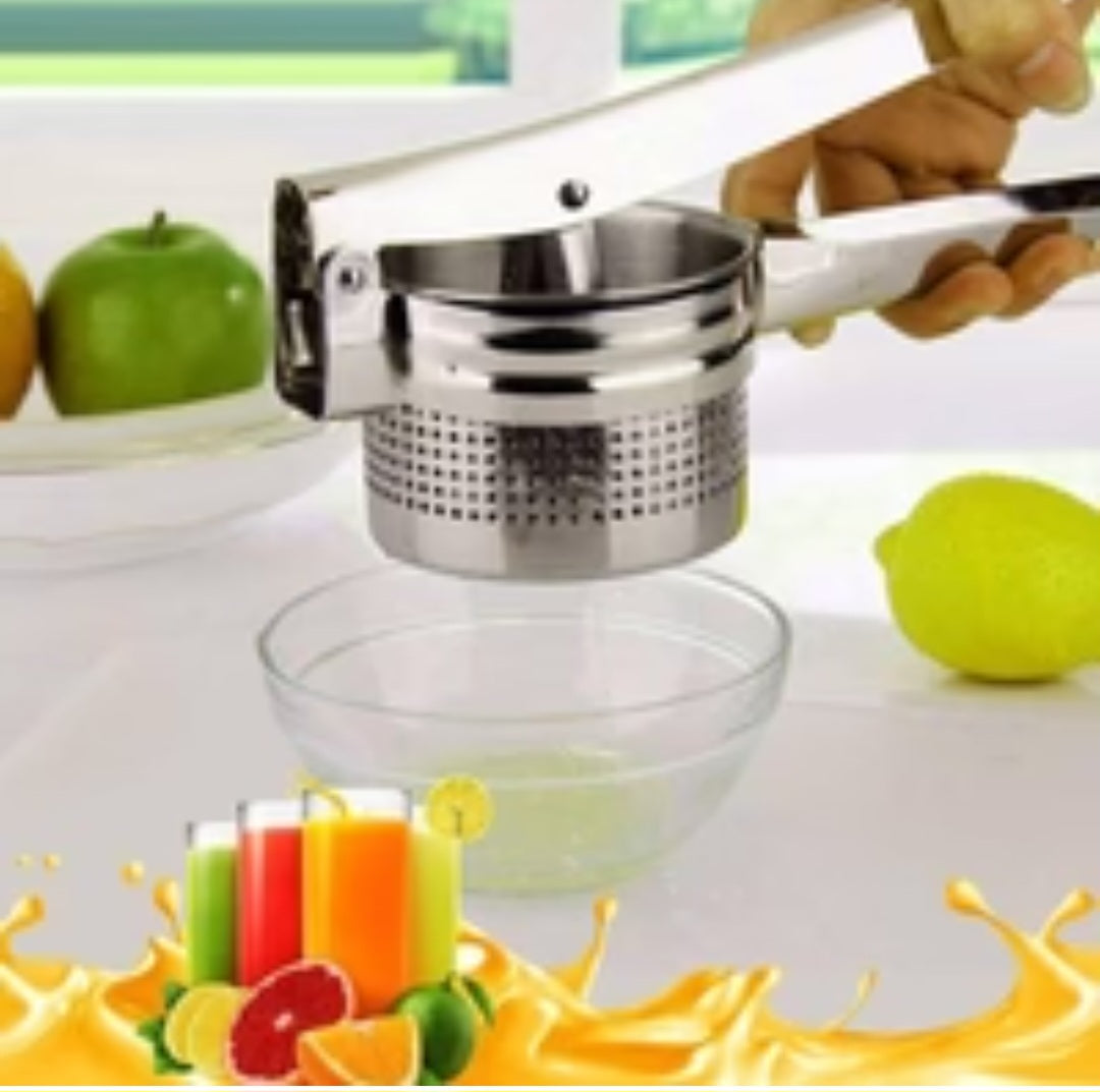 Naša metalna spravica se sastoji iz dve glavne komponente – ručka i gnječilica. Neklizajuča ručka omogućiće siguno i precizno rukovanje. Gnječilica je savršena za pravljenje soka od pomorandže, limuna, nara, lubenice, šargarepe, kao i preleog pirea od krompira, jabuke, kruške, pirinča i dr.