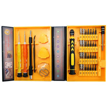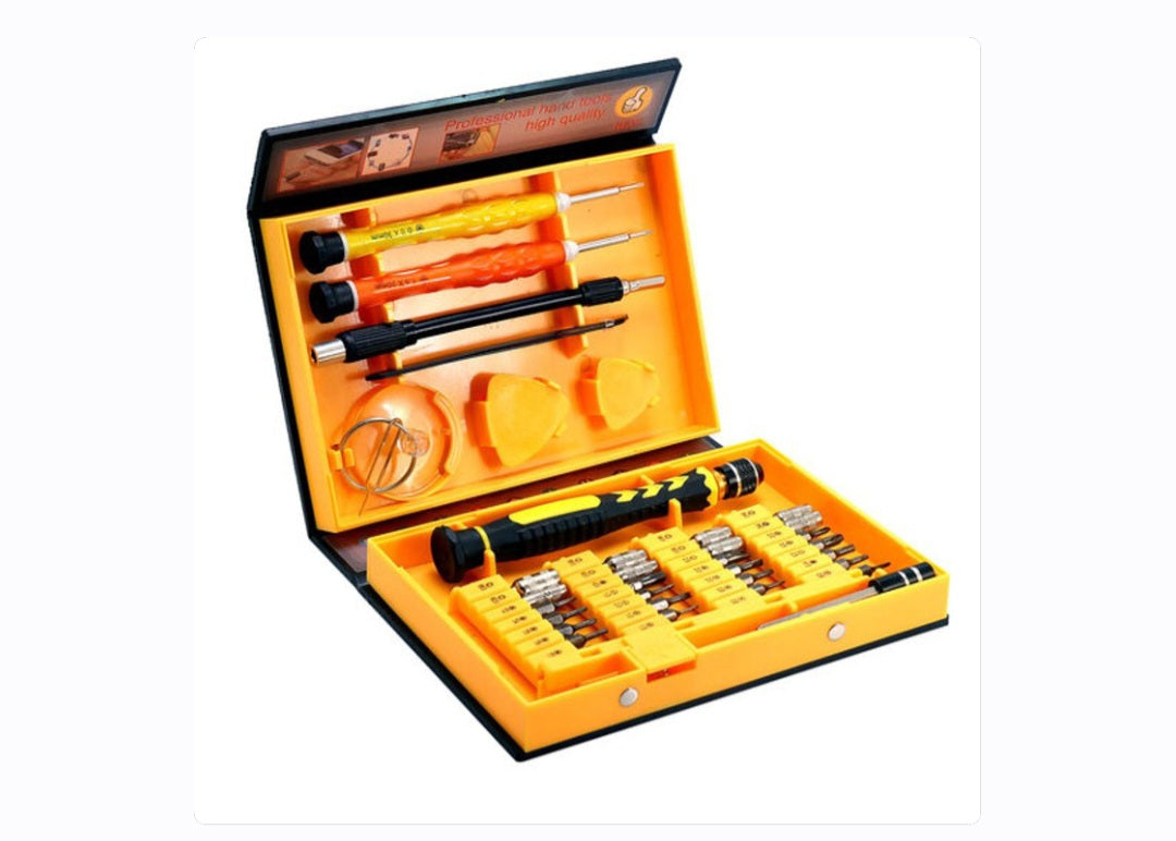 Set alata za popravku mobilnih telefona čini 38 delova koji su namenjeni za otvaranje telefona, satova i drugih manjih uređaja. Set alata je spakovan u kutiju koja je prikazana na slici ispod, tako da nakon završene popravke možete uredno složiti alat. Ispod je napisano šta se sve dobija u setu.