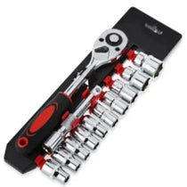 11 kom. Set nasadnih ključeva 1/2″ sk drive od utičnica veličine 8mm-22mm 1/2″ sk. drška sa čegrtaljkom sa brzim otpuštanjem, reverzibilnim i ergonomskim rukohvatom za jednostavnu upotrebu. 1/2″ sk. produžna šipka za pogon dužine 125 mm + 9 utičnica Idealan za upotrebu u popravci automobila, bicikala. Koristi se za zatezanje ili otpuštanje pričvršćivača kao što su matice vijaka itd
